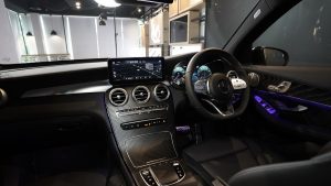 GLC Night Edition hadir juga dengan perlengkapan standar, termasuk panoramic sliding sunroof, Ambient lighting dengan 64 warna, Burmester surround sound system, Thermatic automatic climate control, Active Parking Assist dengan Paertronic dengan kamera 360 derajat, dengan. Peningkatan fungsionalitas dan fleksibilitas ditambahkan dengan penutup bagasi Easy-Pack dengan Handsfree-Access.