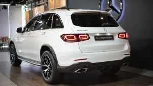GLC Night Edition baru hadir dengan eksterior AMG Line dan Night Package baru termasuk apron depan, apron belakang dan side skirt dalam warna hitam mengkilap, kaca spion dalam warna hitam mengkilap, underguard depan dan belakang dalam warna hitam.