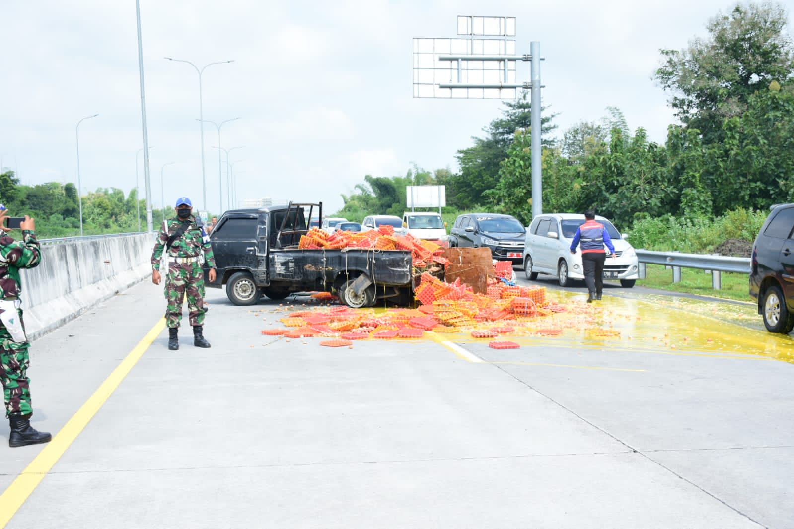 Cimahi, Jurnaljakarta.com – Sebuah kecelakaan naas terjadi di ruas tol KM 826 Pasuruan – Probolinggo pada hari Rabu, 23 Maret 2022 sekitar pukul 09.22 WIB. Dalam kejadian tersebut sebuah pick up yang mengangkut bahan pangan berupa telur ayam mengalami pecah ban sehingga menyebabkan mobil oleng dan menabrak pembatas mobil di jalan tol.