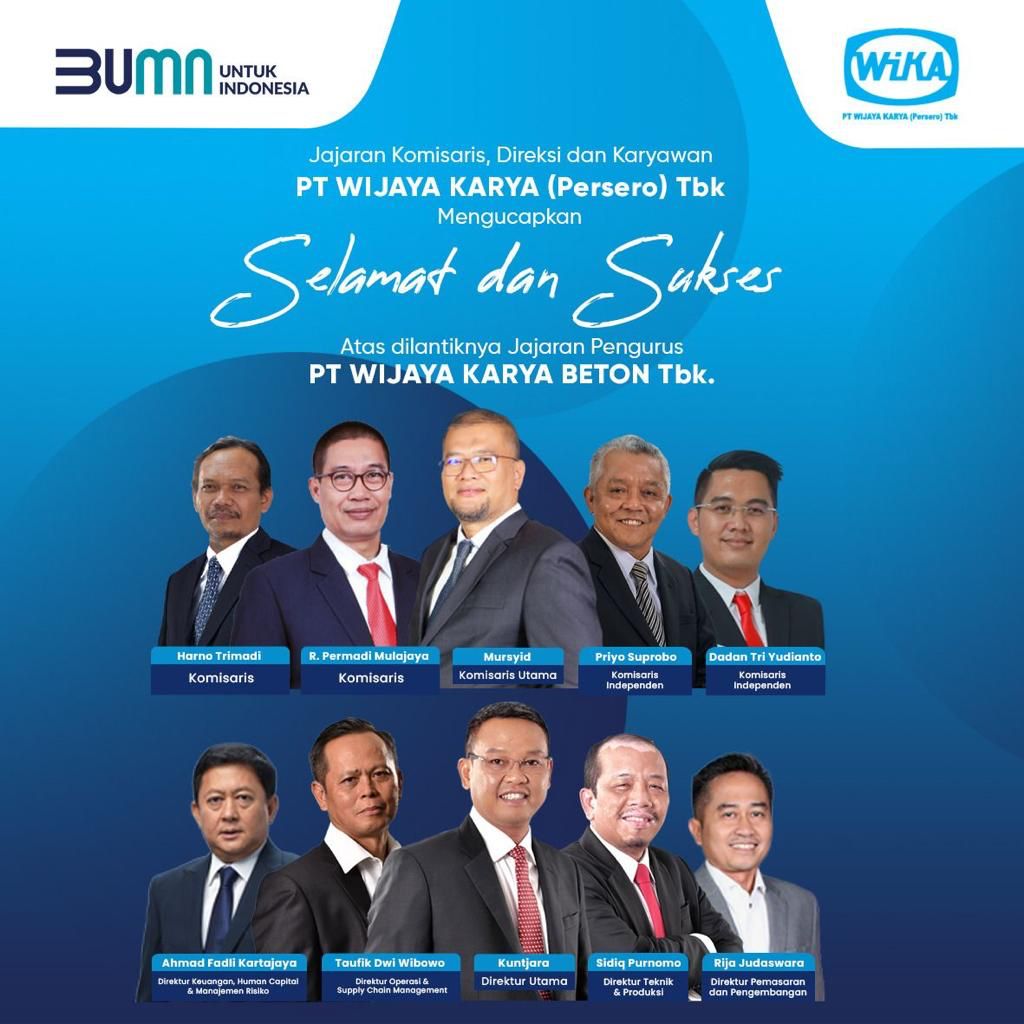 Jurnaljakarta.com – PT. Wijaya Karya Beton Tbk. (WIKA Beton), merubah susunan Dewan Komisaris melalui Rapat Umum Pemegang Saham (RUPS) Tahunan Tahun 2021, yang digelar secara virtual, Senin (18/4/2022).