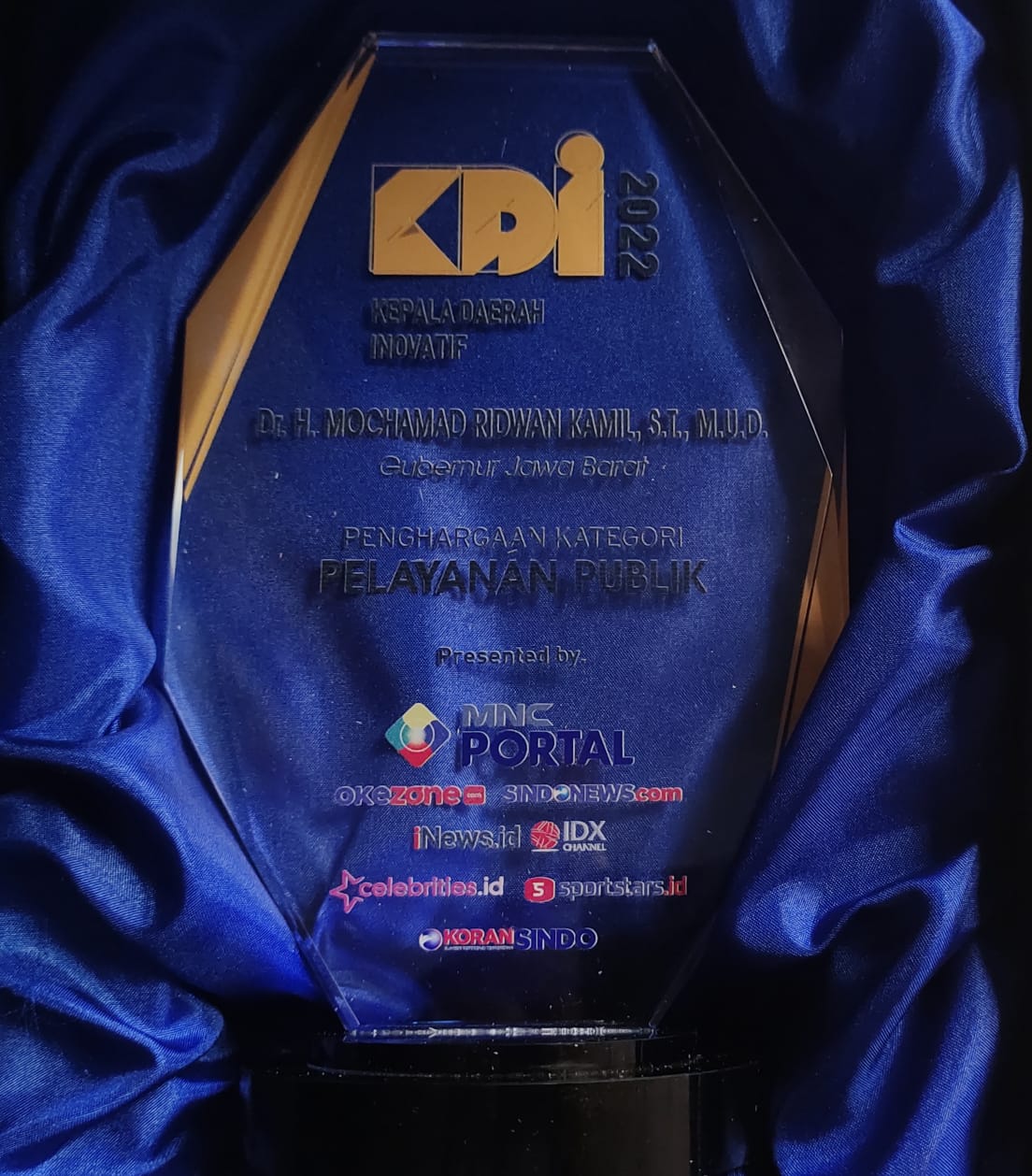Ridwan Kamil menerima penghargaan kategori Pelayanan Publik terkait transformasi digital yang dilakukan di sektor Usaha Mikro Kecil dan Menengah (UMKM) melalui inovasi Program Pendanaan Online (Panon) Jabar.