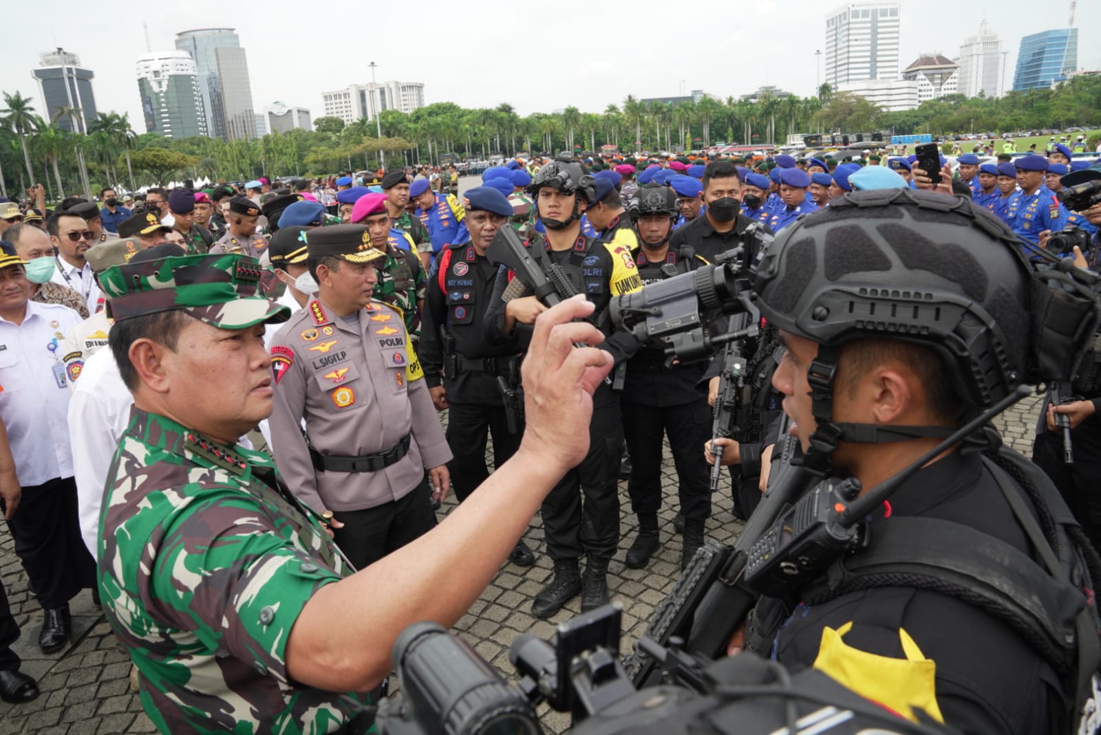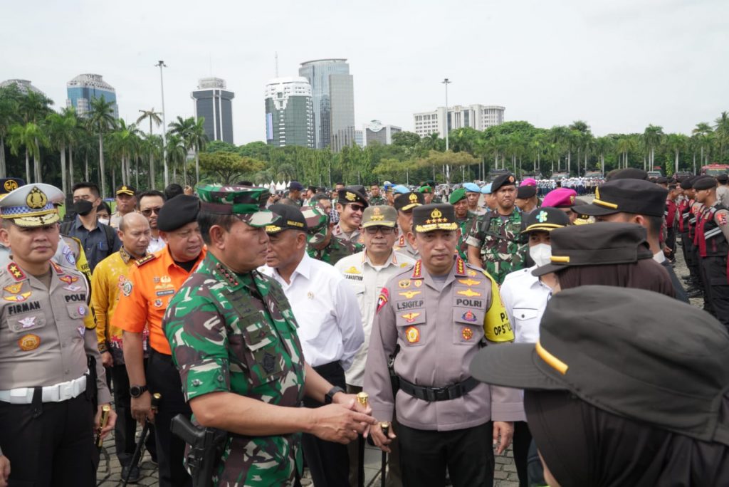 “Masyarakat mengharapkan peran kita dalam menjaga keselamatan mereka. Semoga tugas ini dapat terlaksana dengan baik, aman dan lancar,” tegas Panglima TNI Laksamana TNI Yudo Margono, S.E., M.M., saat memimpin Apel Gelar Operasi Lilin 2022, bersama Jenderal Polisi Listyo Sigit Prabowo dalam Rangka Pengamanan Natal 2022 dan Tahun Baru 2023, bertempat di Silang Monas, Jakarta Pusat, Kamis (22/12/2022).