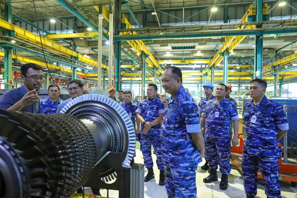 Seusai penandatangan PKS, Kasau dan pejabat TNI AU meninjau fasilitas – fasilitas yang ada di PT GMF Aero Asia Tbk, yang meliputi hanggar painting, hangga 1 wibe body, dan engine shop.
