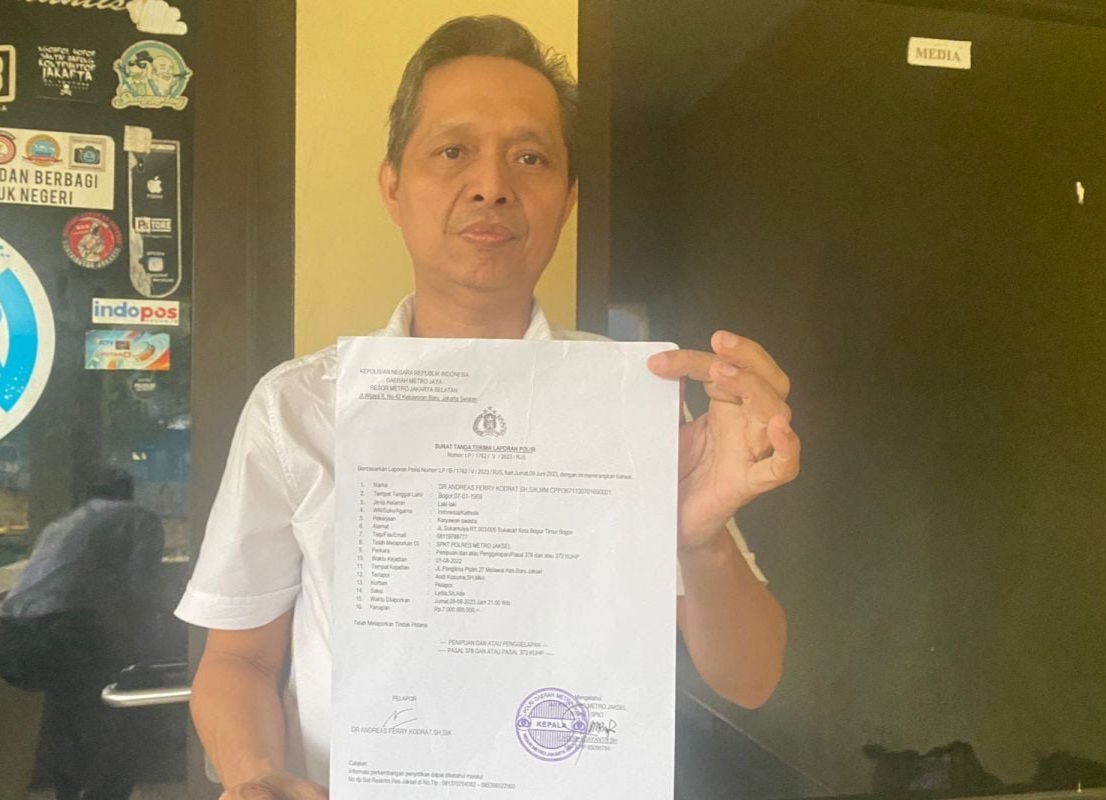 “Terlapor atas nama (AK). Atas dugaan perkara penipuan dan atau penggelapan itu dapat dikenakan Pasal 378 KUHP dan atau 372 KUHP. Sehingga kami merasa dirugikan hingga Rp7 miliar,” kata Andreas FK selaku Pemilik Cessie sekaligus pelapor yang mewakili para investor pada awak media di Jakarta, Senin (12/6) siang.