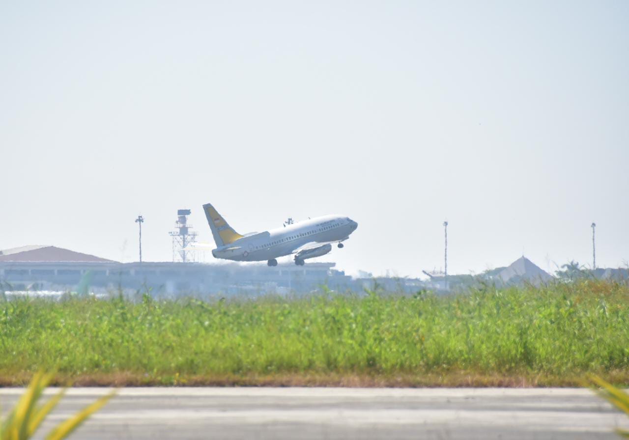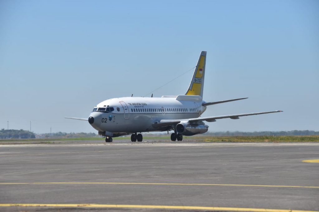 Situbondo, Jurnaljakarta com – Pesawat Boeing 737 TNI AU dari Skadron Udara 5 Lanud Sultan Hasanuddin, Makassar, melaksanakan Operasi Pengamatan Udara dalam manuver lapangan (Manlap) Latihan Gabungan TNI (Latgab TNI) tahun 2023 di pantai Banongan, Situbondo, Jawa Timur, Senin (31/7/2023).