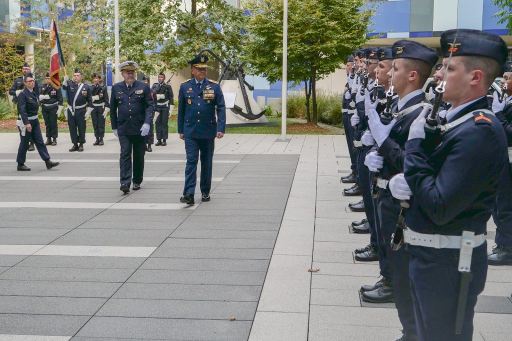 Kedatangan Kasau di Markas Besar Angkatan Udara dan Antariksa Perancis Armée de l’air et de l’espace (AAE) disambut dengan jajar kehormatan, yang mencerminkan hubungan yang erat antara Angkatan Udara Indonesia dan Perancis.